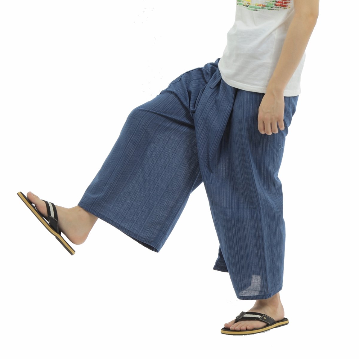 タイパンツ エスニックパンツ コットン ヒモ仕様 ストライプ 袴パンツ ユニセックス メンズ レディース フィッシャーマンパンツ M