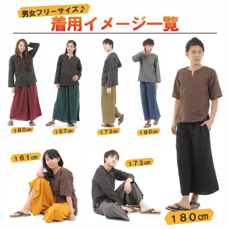 OKI(オキ)のタイパンツ(ワイドパンツ)ゴム仕様。沖縄技研のオリジナルサイズ。身長155cm~180cm推奨。