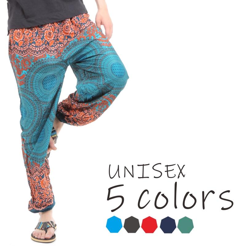 アジアンパンツ サルエルパンツ アラジンパンツ エスニック メンズ レディース フローラル柄 タイパンツ ユニセックス M