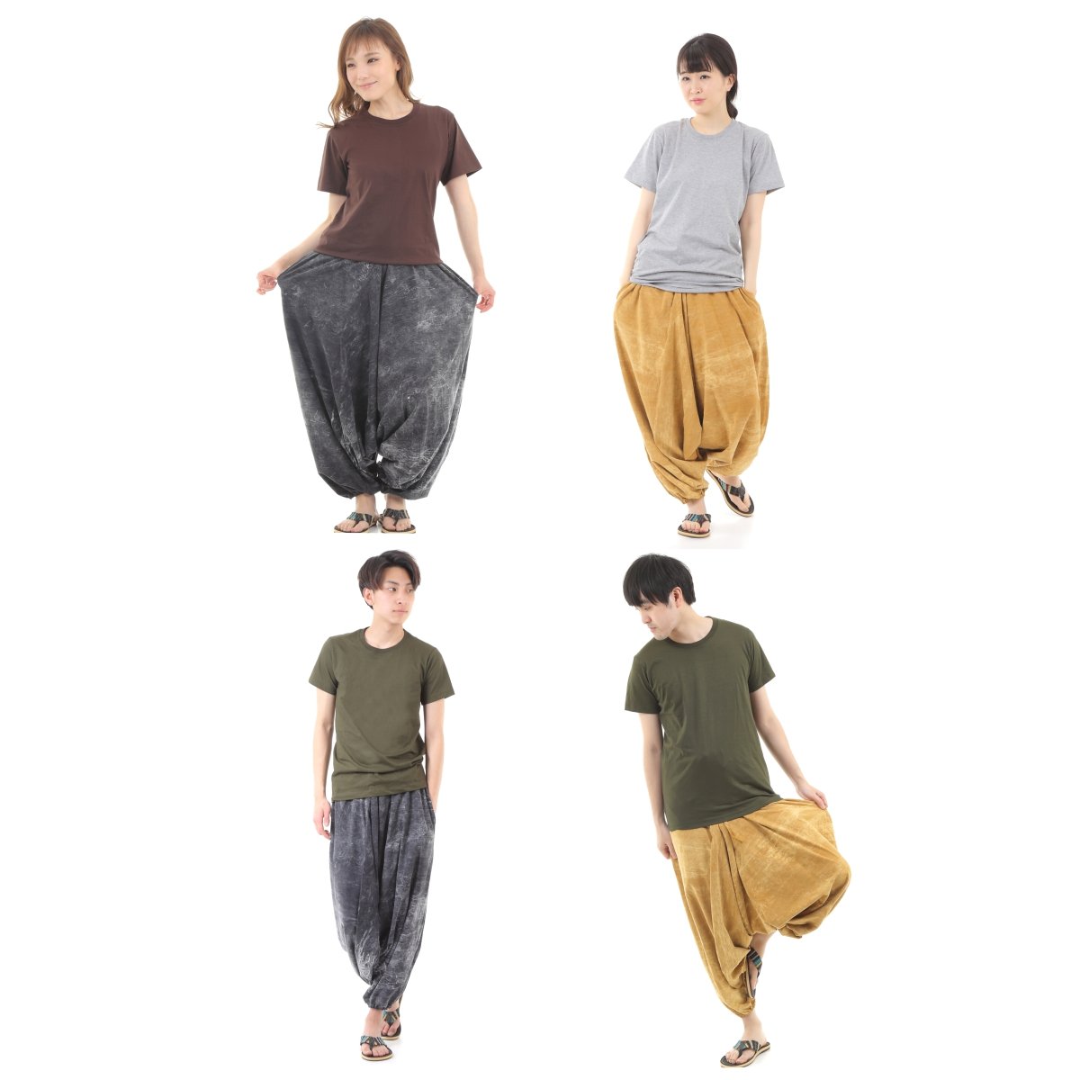 サルエルパンツ アラジンパンツ ストーンウォッシュ ダメージ メンズ レディース ユニセックス エスニック アジアン オリエンタル ダンス 衣装 イベント M