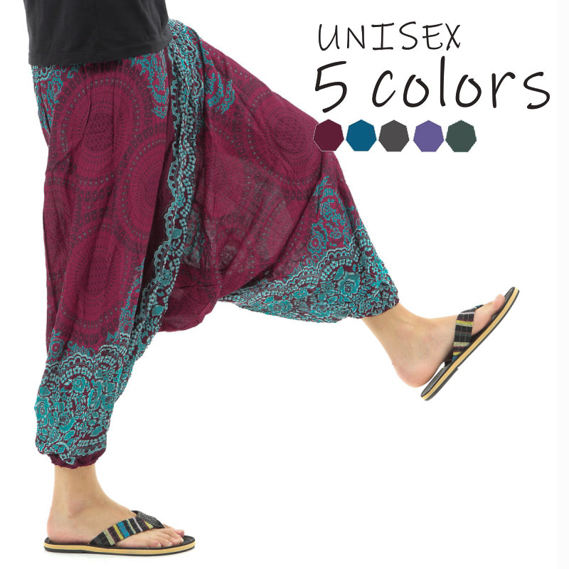 サルエルパンツ メンズ レディース アラジンパンツ レーヨン フローラル タイパンツ ユニセックス オールインワン G