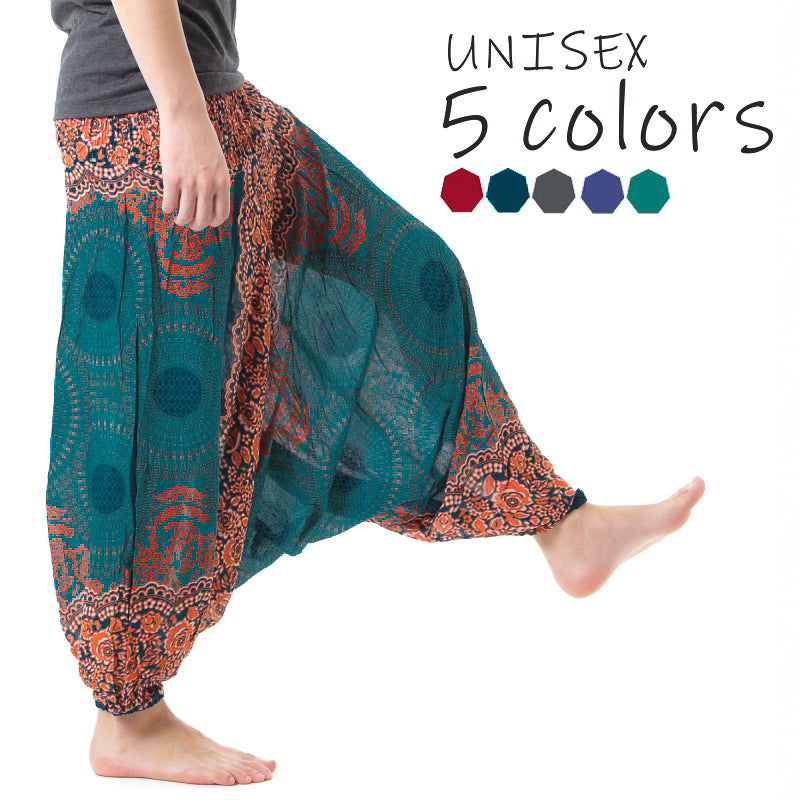 サルエルパンツ メンズ レディース アラジンパンツ レーヨン フローラル タイパンツ ユニセックス オールインワン M