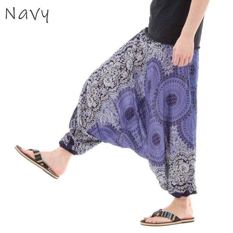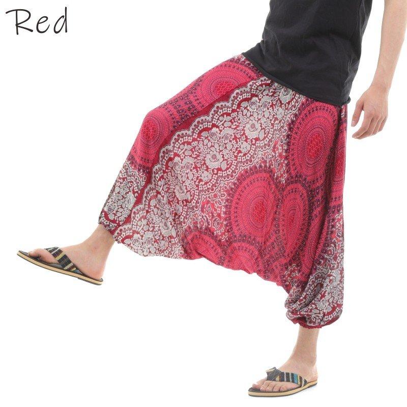 サルエルパンツ メンズ レディース アラジンパンツ レーヨン 向日葵柄 タイパンツ ユニセックス オールインワン G