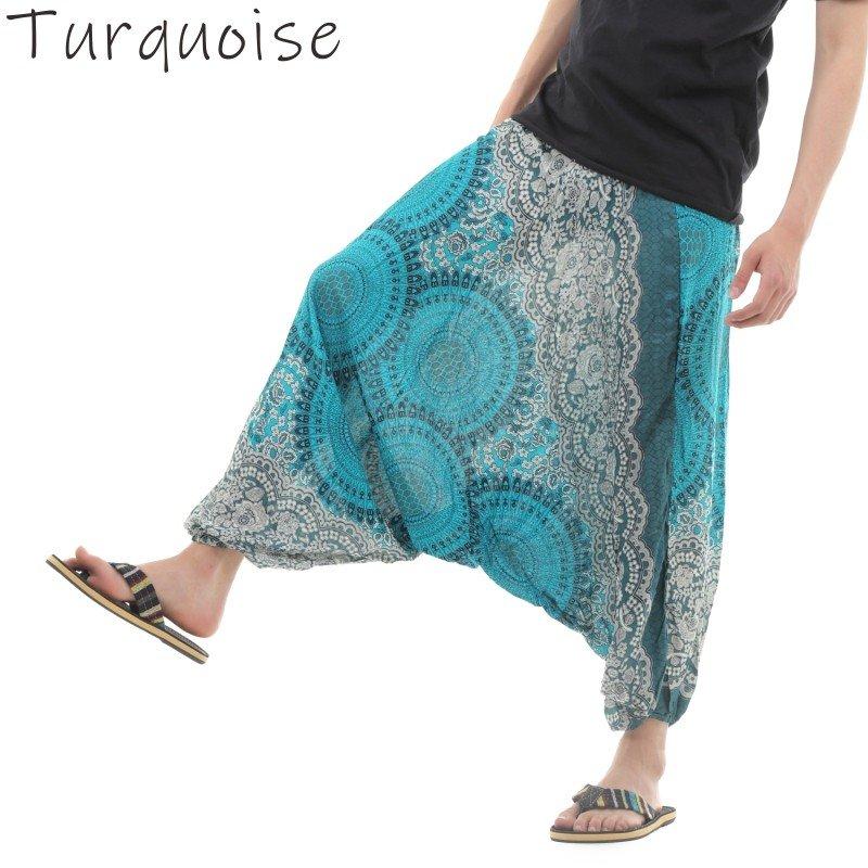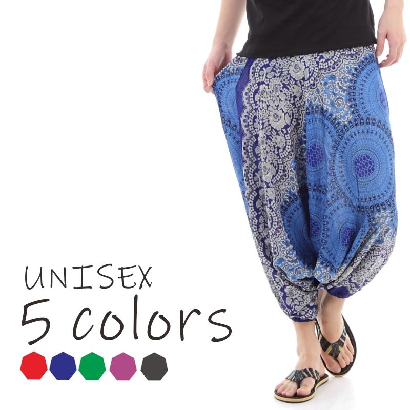 サルエルパンツ メンズ レディース アラジンパンツ レーヨン 向日葵柄 タイパンツ ユニセックス オールインワン M