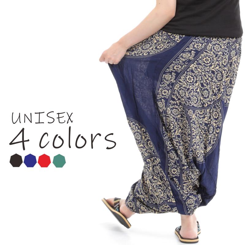 サルエルパンツ メンズ レディース アラジンパンツ レーヨン エレガント柄 タイパンツ ユニセックス オールインワン G