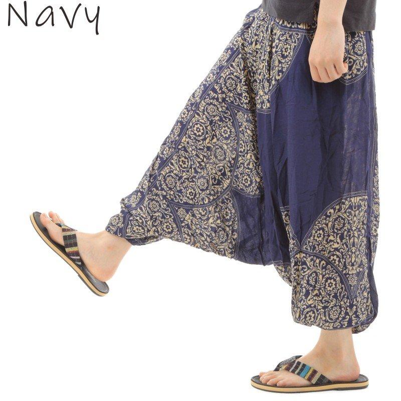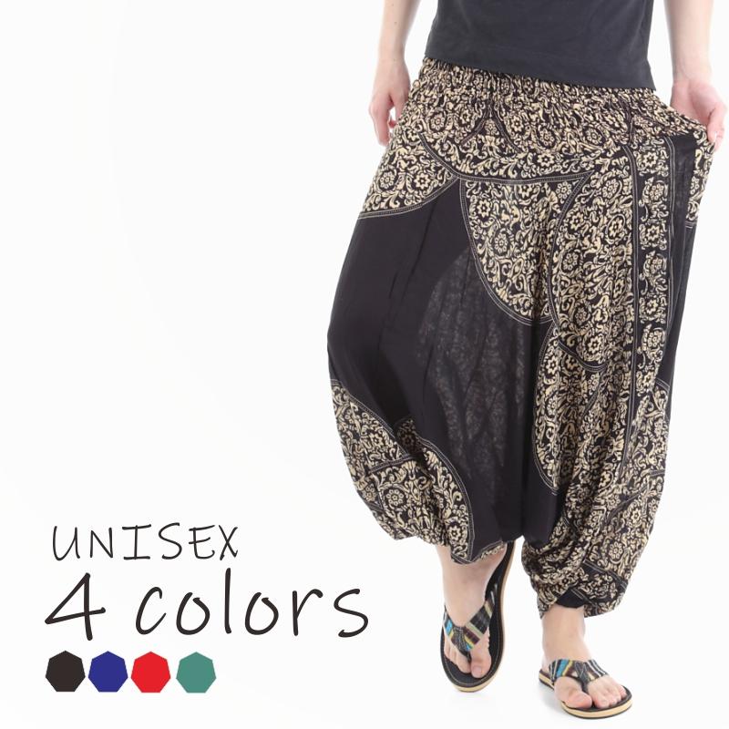 サルエルパンツ メンズ レディース アラジンパンツ レーヨン エレガント柄 タイパンツ ユニセックス オールインワン M