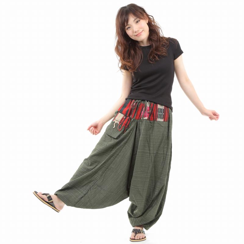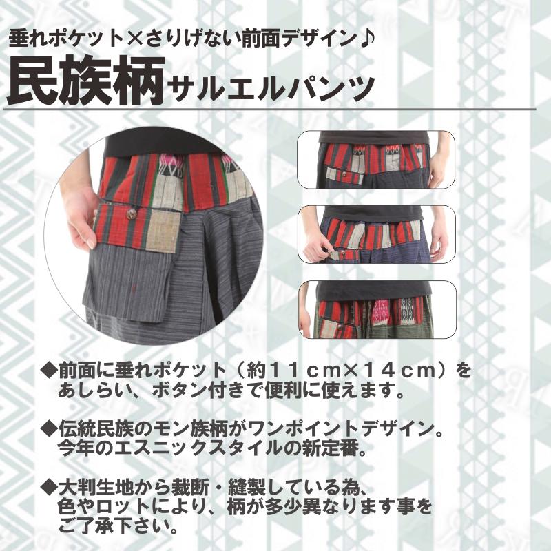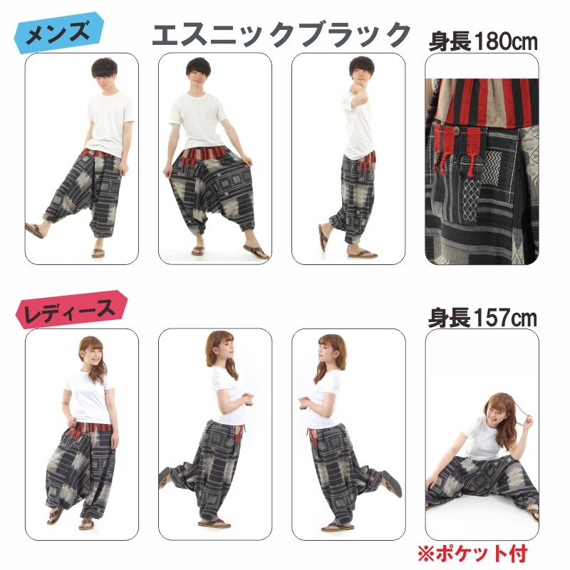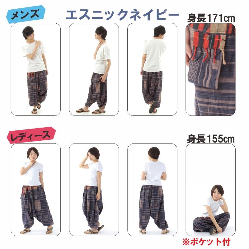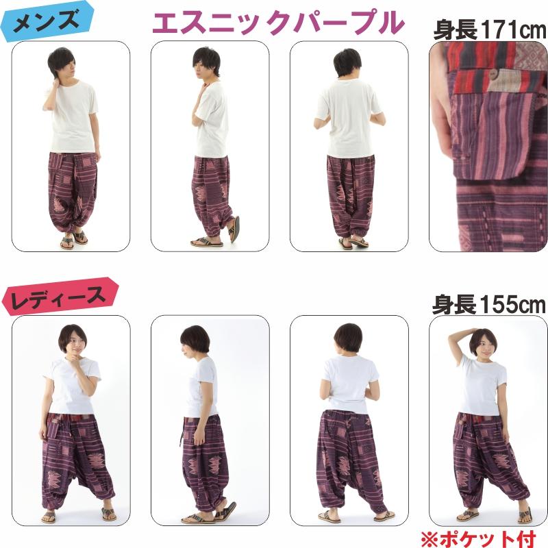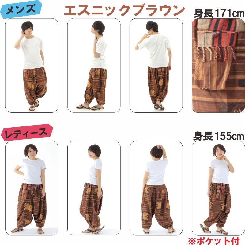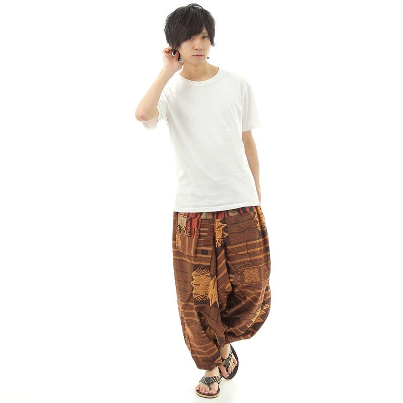 サルエルパンツ アラジンパンツ タイパンツ 民族柄 メンズ レディース ユニセックス ポケット付き M