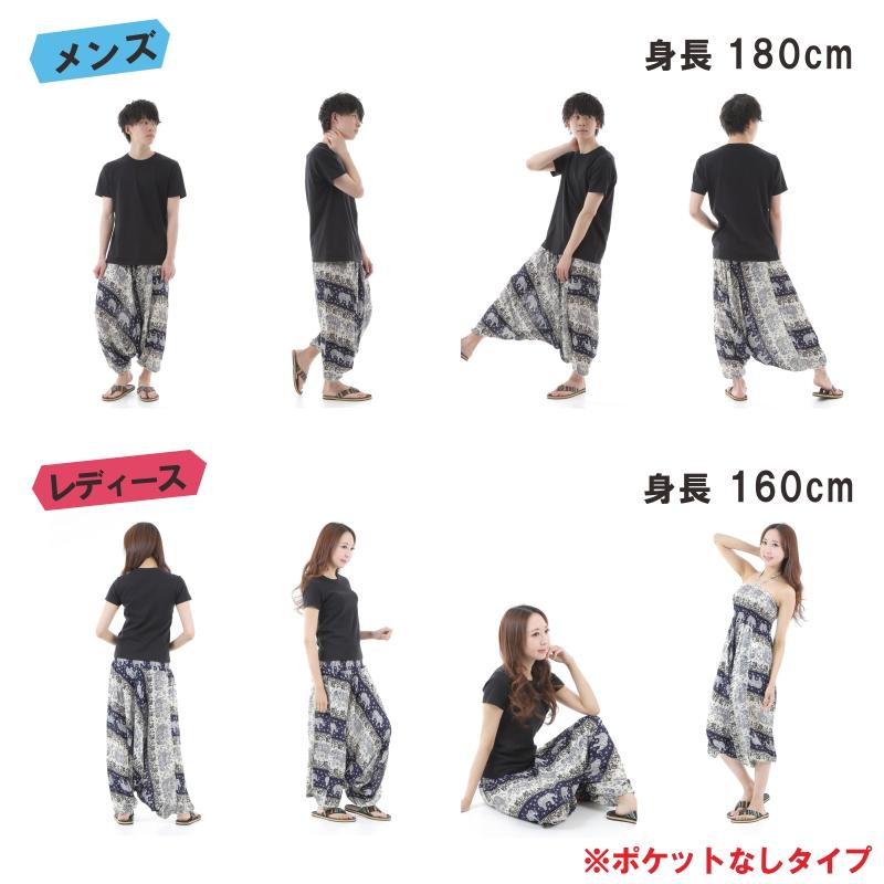 サルエルパンツ メンズ レディース アラジンパンツ レーヨン ゾウB タイパンツ ユニセックス オールインワン M