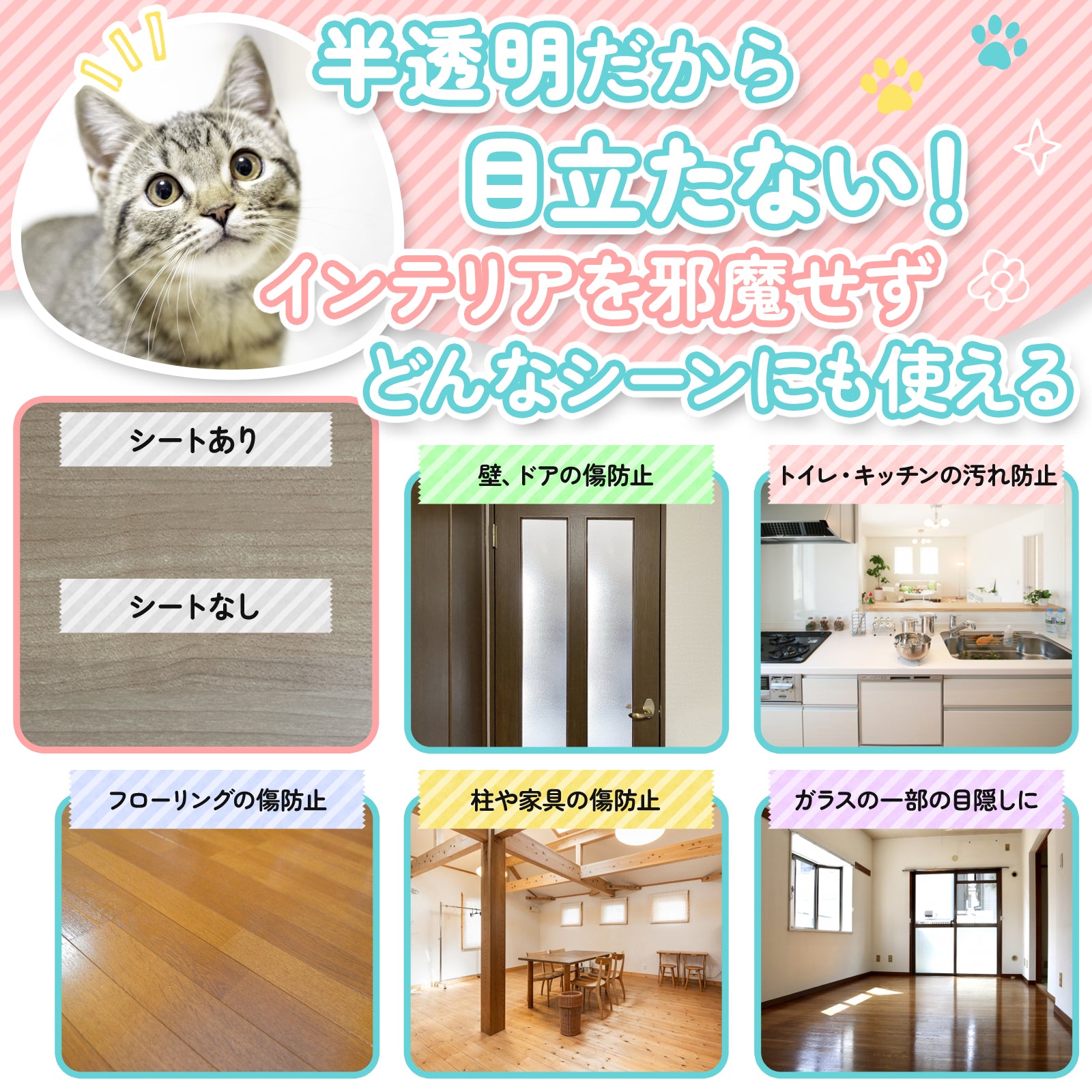 半透明 柱、壁、ドアの傷、汚れ防止 壁紙保護シート テープ幅タイプ(はがせる粘着シート)