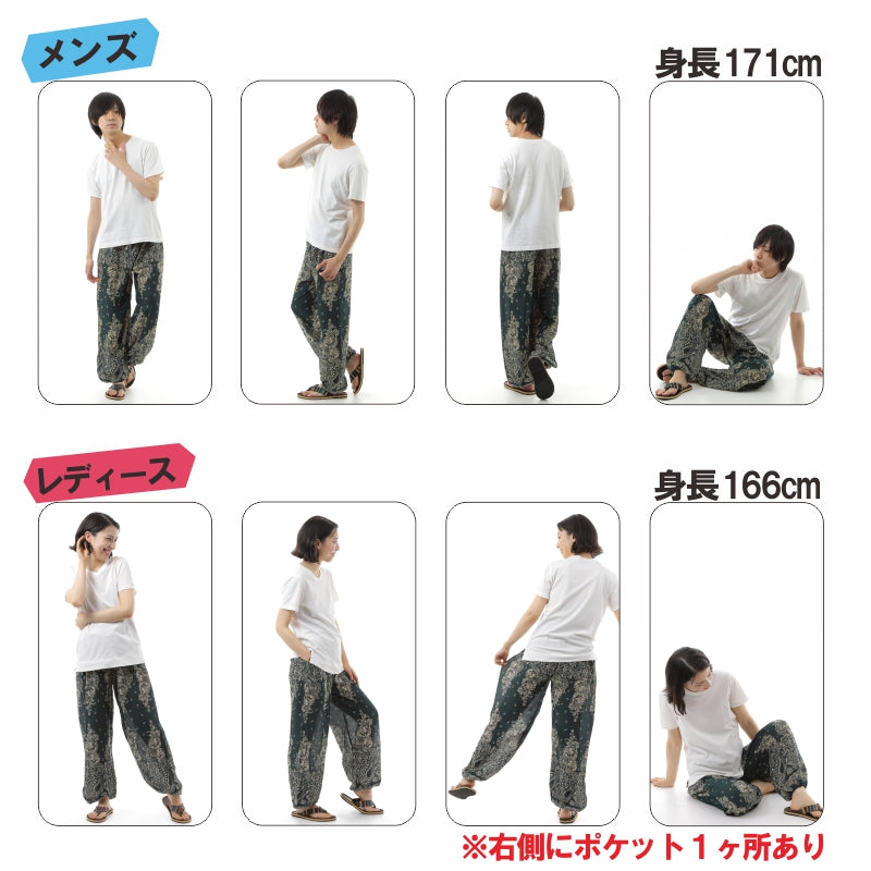 アジアンパンツ サルエルパンツ アラジンパンツ エスニック メンズ レディース タイパンツ ユニセックス AP-ST4652 G
