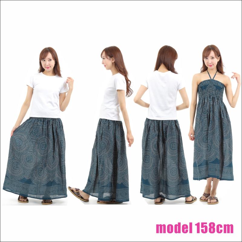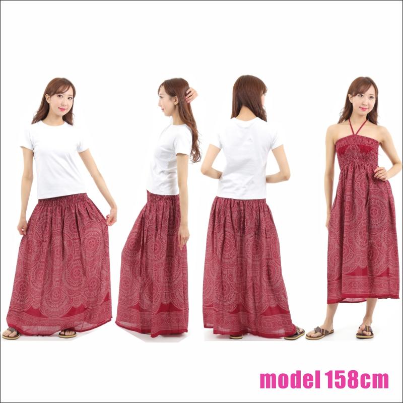 スカート ワンピース ロングスカート エスニック 2WAY マキシ丈エスニック アジアン オリエンタル ダンス 衣装 イベント SK-2019-03 G