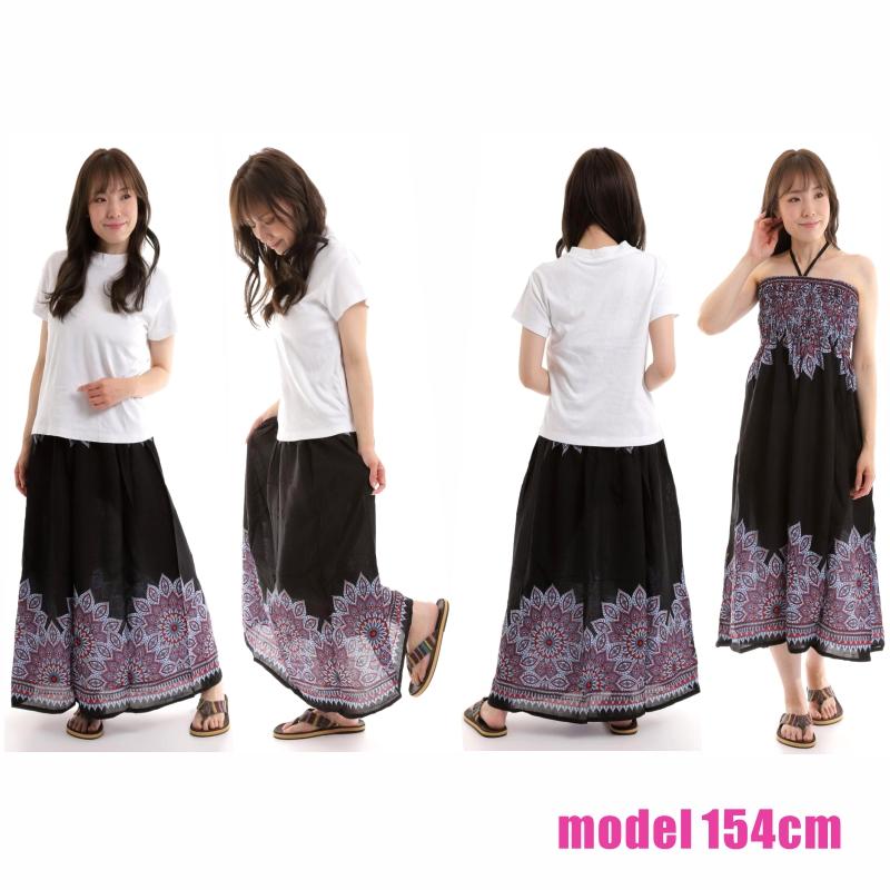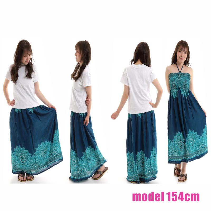 スカート ワンピース ロングスカート エスニック 2WAY マキシ丈エスニック アジアン オリエンタル ダンス 衣装 イベント SK-4982 G